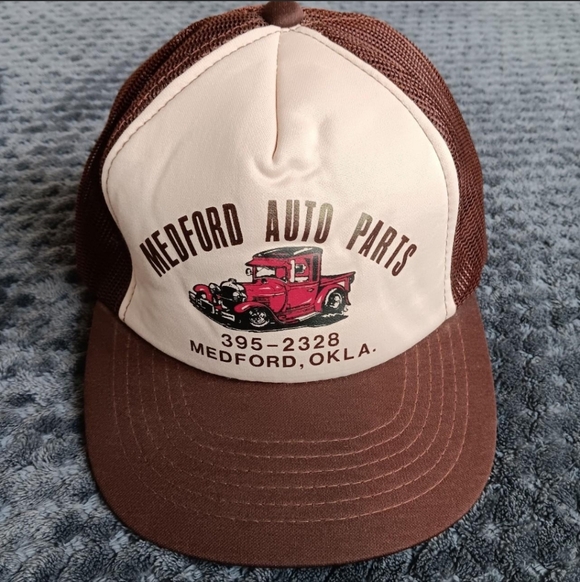 Vintage 90s Foam Mesh Trucker Snap Back Hat Cap Medford Oklahoma Mechanic Truck