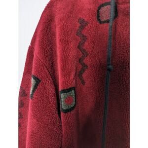Vintage 90's Forecaster Plush Fleece Mid Length Jacket Red Geometric Print Size M