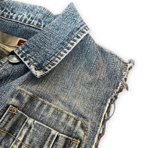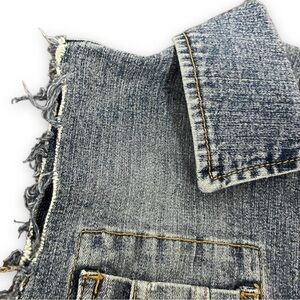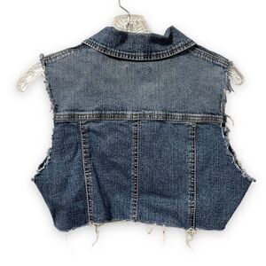 Vintage 90s Forever 21 Cropped Denim Vest Frayed Hem Womens Sz Small Punk Grunge