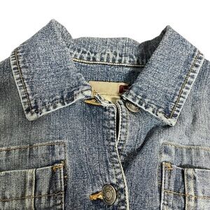 Awesome vintage 90s/Y2K blue jean vest! Collared, medium wash, frayed hems, 2 chest pockets. Has silver button closure with Forever Twenty-One and hearts printed on them. The size tag is an older F21 label - rare find!