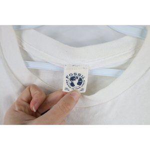 Vintage 90s Fossil Mens XL Spell Out Center Logo Short Sleeve T-Shirt White USA