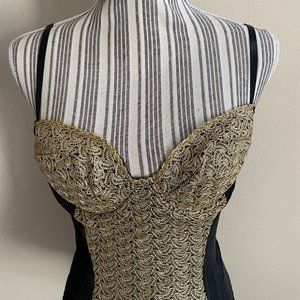 Vintage 90's Frederick's of Hollywood Gold Black Bodysuit USA Made Size M