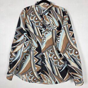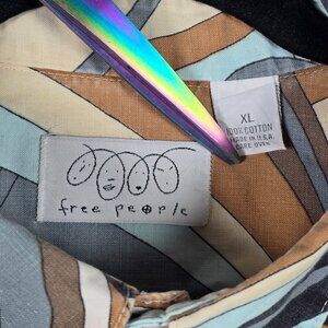 Vintage 90s Free People Abstract 100% Oversized Womens XL Long Sleeve Button Top