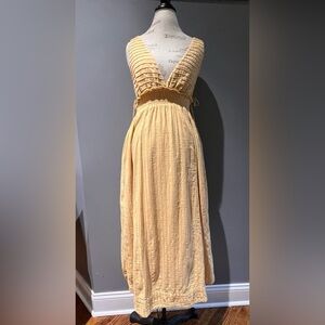 Vintage 90s Free People Yellow Ankle Thick Cotton Sun Dress With Lace Up Sides S