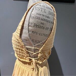 Vintage 90s Free People Yellow Ankle Thick Cotton Sun Dress With Lace Up Sides S