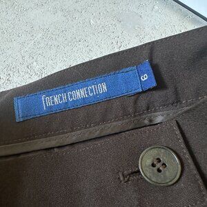 Vintage 90s French Connection A-Line Button Front Mini Skirt in Brown Size 6