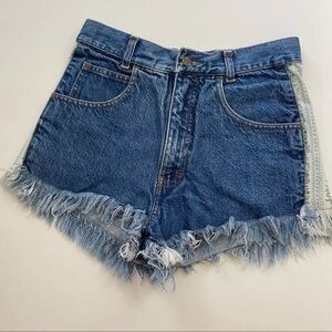 Vintage 90’s Fringe Cut Off Floral Dark Wash High Rise Shorts 7/8 Western