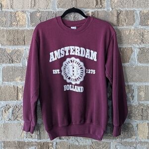 Vintage 90s Fruit of the Loom Amsterdam Burgundy Red Crew Neck Sweatshirt Small