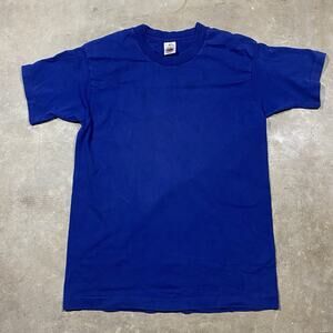 Vintage 90s Fruit of the Loom Blue Blank T-Shirt Made in USA Single Stitch M