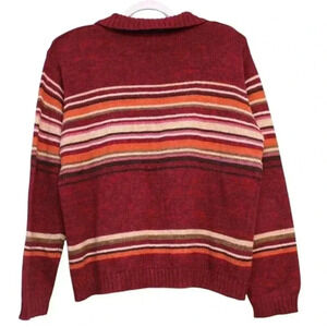 Vintage 90s Full Zip Sweater Size Large Ramie Cotton Striped Fall Retro Cozy