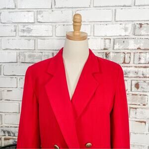 Vintage 90s Fundamental Things Petites Red Wool Double Breasted Blazer Jacket 6