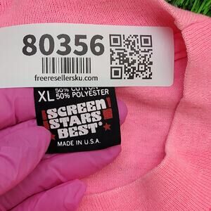 Bring humor to your style with this vintage 90s "Best Tan Wins" pink shirt, Screen Stars, USA-made, women’s XL size.