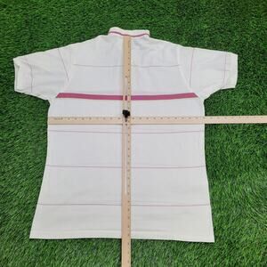 Clean 90s GANT Rugger polo in crisp white with magenta stripe detailing and mod prep vibes made in USA