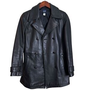 Vintage 90's GAP 100% Leather Double Breasted Pea Coat Black Size Small