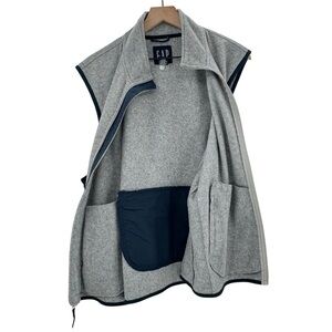 Vintage 90s GAP Fleece Vest Gray Navy Blue Sleeveless Zipper Pockets | Large