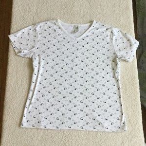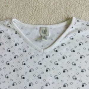 Vintage 90s GAP Floral V-neck Short Sleeve Tee Black White - Sz Medium