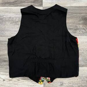 Vintage 90s GAP Floral Womens M Flower V-Neck Button Vest Shirt Cropped Dainty colorful loud Neck Chest Logo Vest Top sleeveless 4-button closure side pockets 100% cotton lightweight all over print aop classic casual retro vest