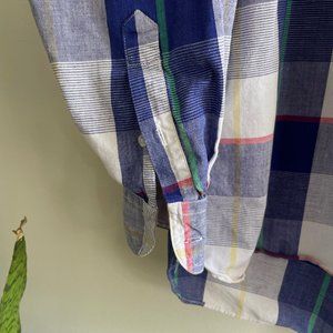 This is a very cool item, mid-90s era GAP long sleeve button-down. Multicolored checkerboard pattern, with the authentic 90s wide-cut style. NOTE: some slight staining in lower torso area, hence the discounted price for an otherwise rare find.