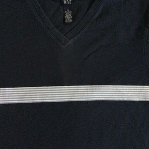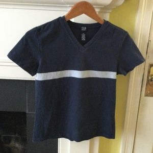 Vintage 90s GAP Striped V-Neck Tee Navy Blue Short Sleeves - Sz Medium