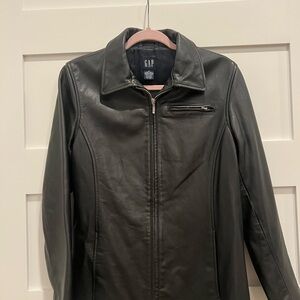 Chic and versatile leather jacket from GAP. Features a modern design with a zippered pocket. Ideal for stylish layering. This jacket is gorgeous and in MINT condition, lining has some pulling (see photos) purchased 1994/95.one owner only worn a handful of times