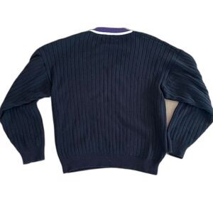 Vintage 90s GUESS Country Club Black Tan Cable Knit V-Neck Stripe Sweater Sz XL