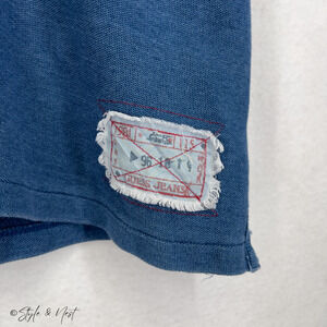 VINTAGE 90S GUESS JEANS CASUAL SHIRT, RETRO DENIM KNIT TOP, HERITAGE STREETWEAR PIECE, CLASSIC AMERICAN BRAND FASHION, AUTHENTIC VINTAGE POLO ALTERNATIVE, LAID-BACK EVERYDAY WARDROBE STAPLE, PREPPY CASUAL VIBE, 1990S DESIGNER CASUALWEAR, ARCHIVAL STREET STYLE, MINIMAL LOGO AESTHETIC, RUGGED VINTAGE TOP, COLLECTIBLE RETRO SHIRT, TIMELESS THROWBACK CLOTHING, THRIFT FIND FASHION, 90S NOSTALGIA WARDROBE, VINTAGE GUESS COLORBLOCK LONGSLEEVE RUGBY POLO SHIRT LARGE DISTRESSED, MEN’S VINTAGE GUESS LABEL, ARCHIVAL CASUALWEAR OUTFIT, SOFT COTTON CASUAL TOP, PATCHWORK RALPH LAUREN INSPIRED DESIGN, Y2K ALMOST, RETRO GOLF SHORT SLEEVE POLO BLUE
