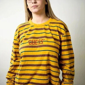 Vintage 90s GUESS Striped Long Sleeve Tee - L