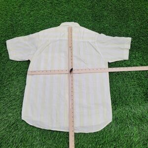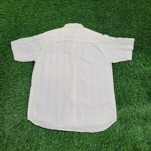 Vintage 90s GUESS Stripes Button Shirt Womens L 21x29 White Yellow