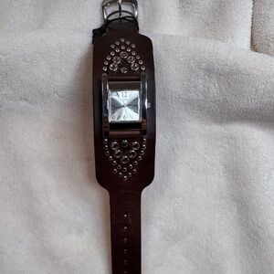 This beautiful vintage GUESS women’s watch (model G75772L) is from the 1990s and has never been worn. It is still on the original plastic watch holder from purchase. A great find for collectors of vintage fashion watches or anyone who loves classic GUESS style.
