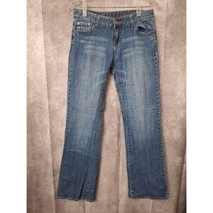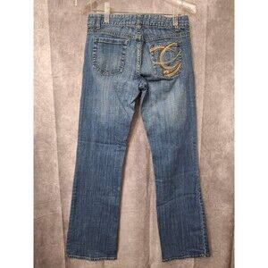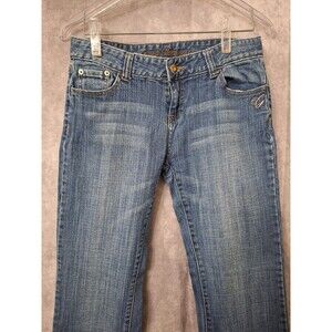 These Y2K Vintage 90s G-Unit 50 Cent Low Rise Flare Wide Leg Jeans in Women's size 9 are a nod to the hip hop era with their Y2K style. Made of lightweight and breathable denim fabric, these jeans feature button and zipper closures with embroidered logo accents. The wide-leg silhouette and low rise give a retro vibe, perfect for a grunge, bohemian, or college-inspired look. The comfortable and stretchy material makes them easy to care for with machine washable instructions. Ideal for all seasons, these jeans are a stylish choice for any festival or casual outfit. Waist 28 in. Inseam 30 in. Rise 8.5 in. Length 40 in.