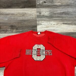 Vintage 90s Galt Sand Ohio State Buckeyes Red Silver Womens Large Pullover Embroidered Cropped Sweatshirt