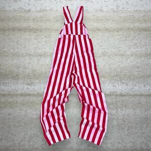Vintage Game Bibs Overalls Red White Striped Baggy Fit Wide Leg Work Wear 90s