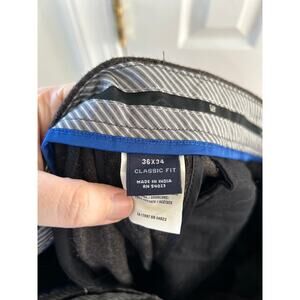 Excellent condition. Chocolate brown with light grey pin stripes. Classic straight leg trouser fit.