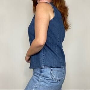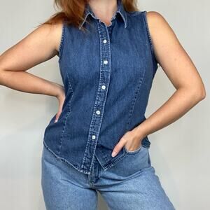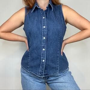 Vintage 90s Gap Size Large 100% cotton Sleeveless Button Down Chambray Blouse.