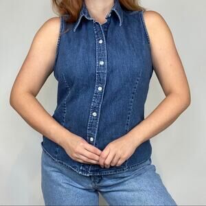 Vintage 90s Gap Size Large 100% cotton Sleeveless Button Down Chambray Blouse