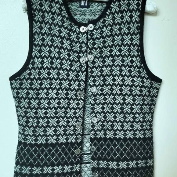 Vintage 90s Gap Wool Vest sz M Fair Isle Nordic Metal Clasp Front Mid Length