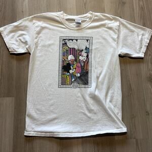Vintage 90's Mickey Mouse Goofy Donald Duck Smoking Hookah Marijuana Weed Funny White Tee Shirt Sz Large L Rare Gawdawful 1970's Print