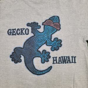 VINTAGE GECKO HAWAII STRIPED SHIRT, 90S GRAY GECKO TEE SMALL MEDIUM, HAWAIIAN LIZARD GRAPHIC TSHIRT, RETRO SURF TEE USA MADE, VINTAGE 90S TEE GECKO BRAND, GECKO SHIRT, 90S TEE, HAWAII TSHIRT, STRIPED SHIRT, LIZARD TEE