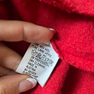 Classic vintage late 80s-early 90s Geiger Austria pure new wool jacket in a vibrant cherry red. Features oversized buttons, front pockets, and a structured silhouette. Tagged size 38 (fits S–M, please check measurements). This is shown on a size XS person