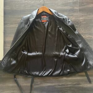 Vintage 90s Genuine Leather Biker Zip Up Jacket with Waist Tie