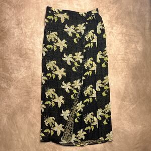 Vintage 90s Geometric Floral Print Mesh Reversible Faux Wrap Maxi Skirt