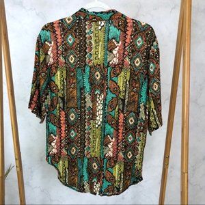 Vintage 80s 90s Size L Diani Geometric Printed Short Sleeve Button Up Shirt