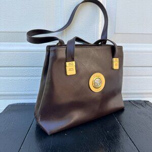 Vintage 90s Gianni Versace Bag Tote Purse Brown Gold Italy Medusa Logo