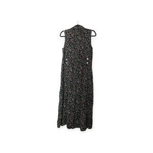 Vintage 90s Giorgio Sant Angelo Black Floral Button Down Sleeveless Dress Rose