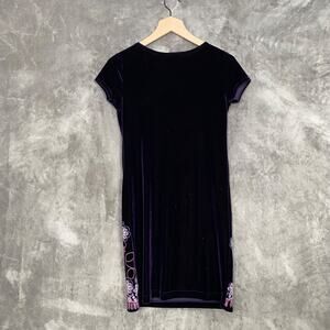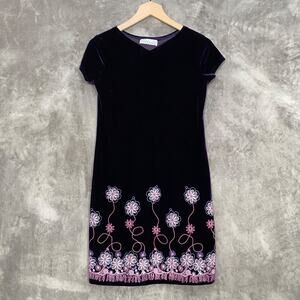 Vintage 90s Girls Dress Size 14 Deep Purple Velvet Embroidered Flowers Y2K