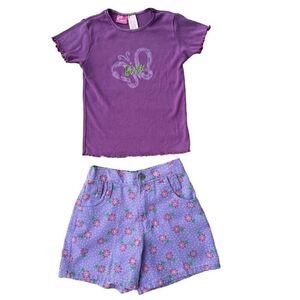Adorable Girls Vintage Purple Flower Printed Mom Jean Shorts, Pair It With A 90’s Barbie Original Lettuce Hem Baby Tee *Sold Separately, Shorts A A Size 6, Waist 10”, Rise 9”, Inseam 4”, These Are In Excellent Pre-Owned Condition *shirt is sold separately