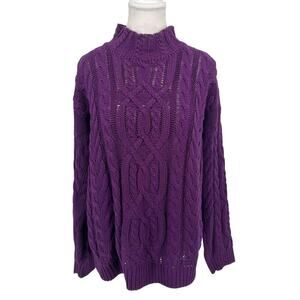 Vintage 90’s Gitano Cable Knit Mock Neck Sweater Purple Medium