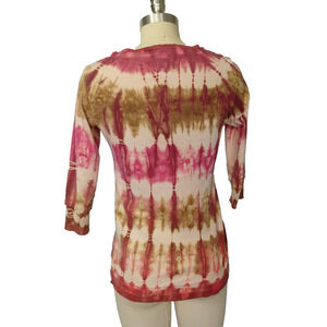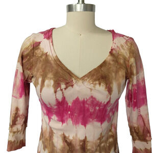 Vintage 90s Glima Tie Dye Top Size S Pink Brown V Neck ASO 1990s Raw Hem