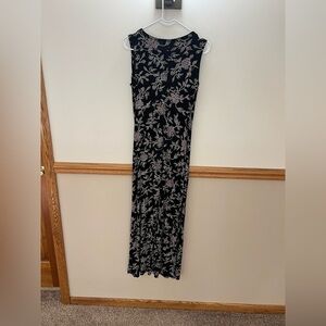 Vintage 90s Glitter Black Floral Formal Maxi Dress Set Size 8/10. Both are extremly stretchy and flattering. The dress is a size 8 with silvery rose gold roses design and the cardigan also has silver glitter winter leaves look. One of a kind. By Ronni Nicole by Ouida.