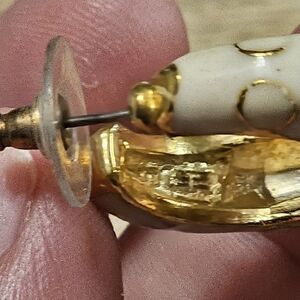 Beautiful Vintage Gold And Beige Modern Statement Pierced Earrings